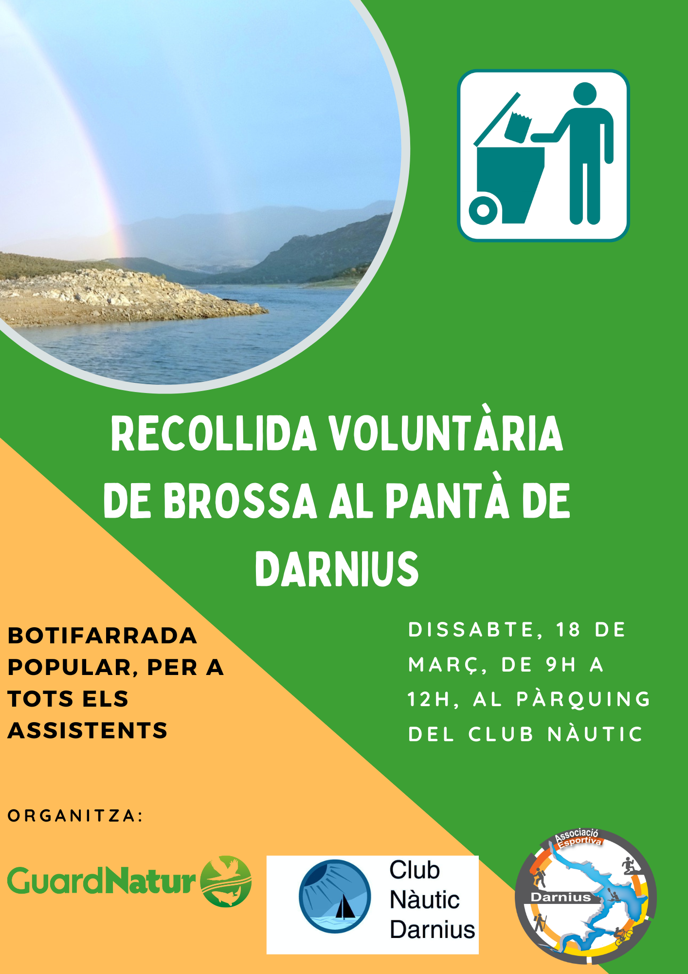 Agenda RECOLLIDA VOLUNTÀRIA DE BROSSA AL PANTÀ DE DARNIUS Dissabte, 18 de març. De 9 hores a 12 hores. | Al pàrquing del Club Nàutic Botifarrada popular, per a tots els assistents! < Entrada AnteriorEntrada Posterior >